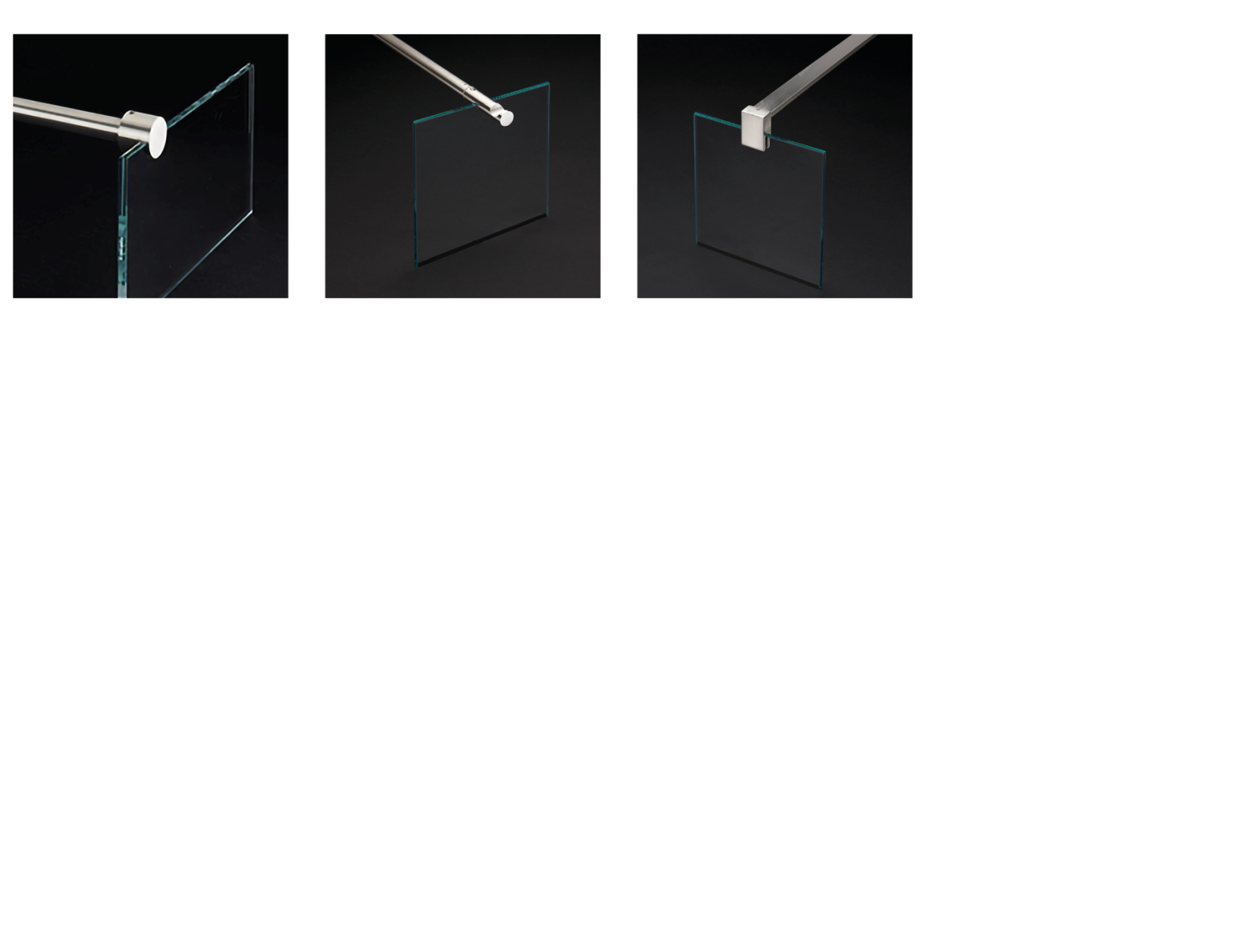Sistema walk-in composto da tre cristalli. Il cristalo laterale e frontale sono fiaati alla relativa parete tramite montante in acciaio inox. All'estremità opposta del cristallo frontale, mediante angolari in acciaio vi è fissata un'anta perpendicolare. In sommità il tirante di stabilizzazione collega cristallo anta e laterale.